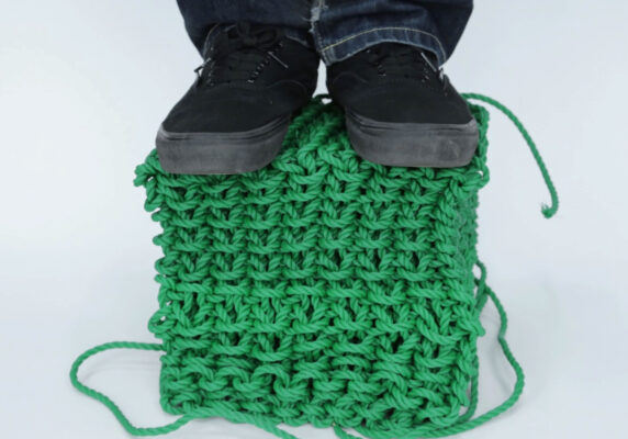 また、ソリッド編みで作れるサンダルや、椅子、テーブルなどは、ある程度の重量物を乗せても大丈夫な強度を持たせることも可能だという。