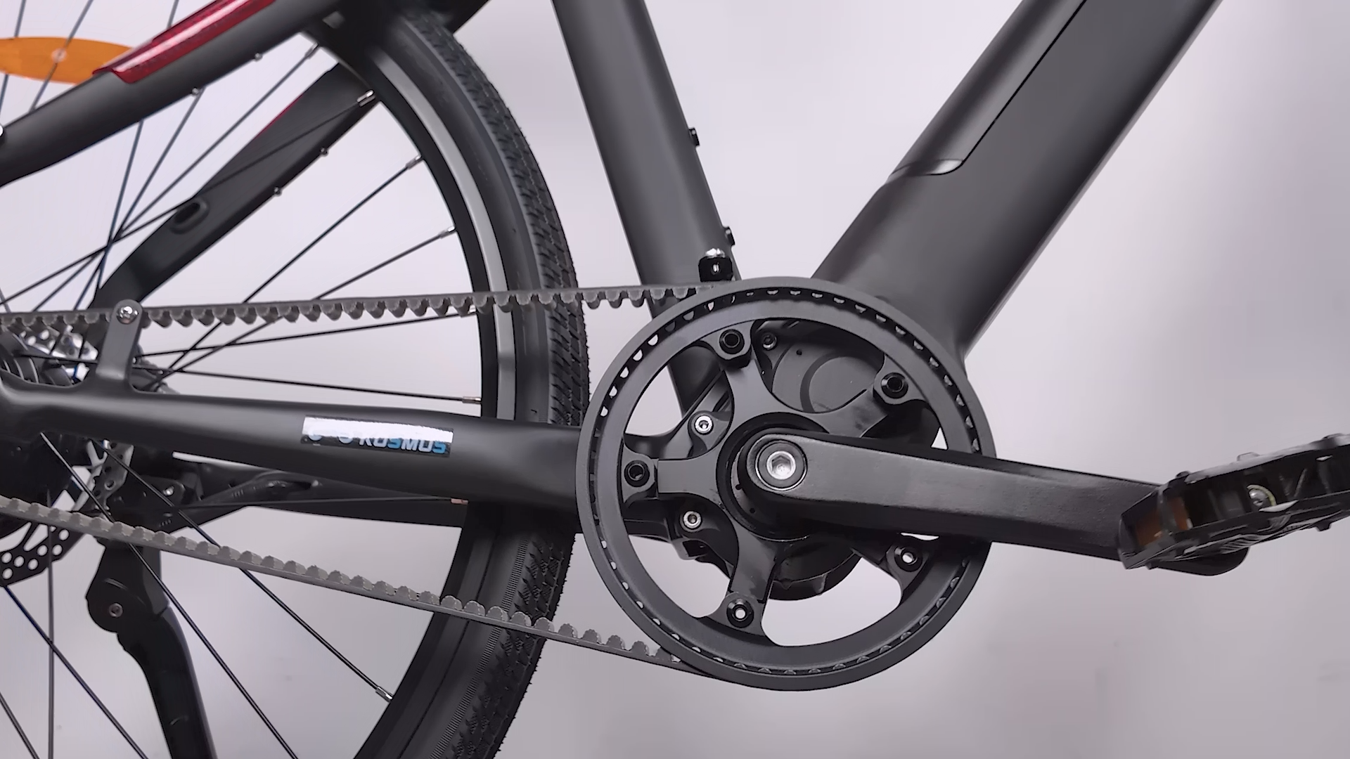 ベルトには、錆びにくく摩耗しにくいカーボンベルトを使用。チェーンの自転車よりも軽く、潤滑油は必要ない。