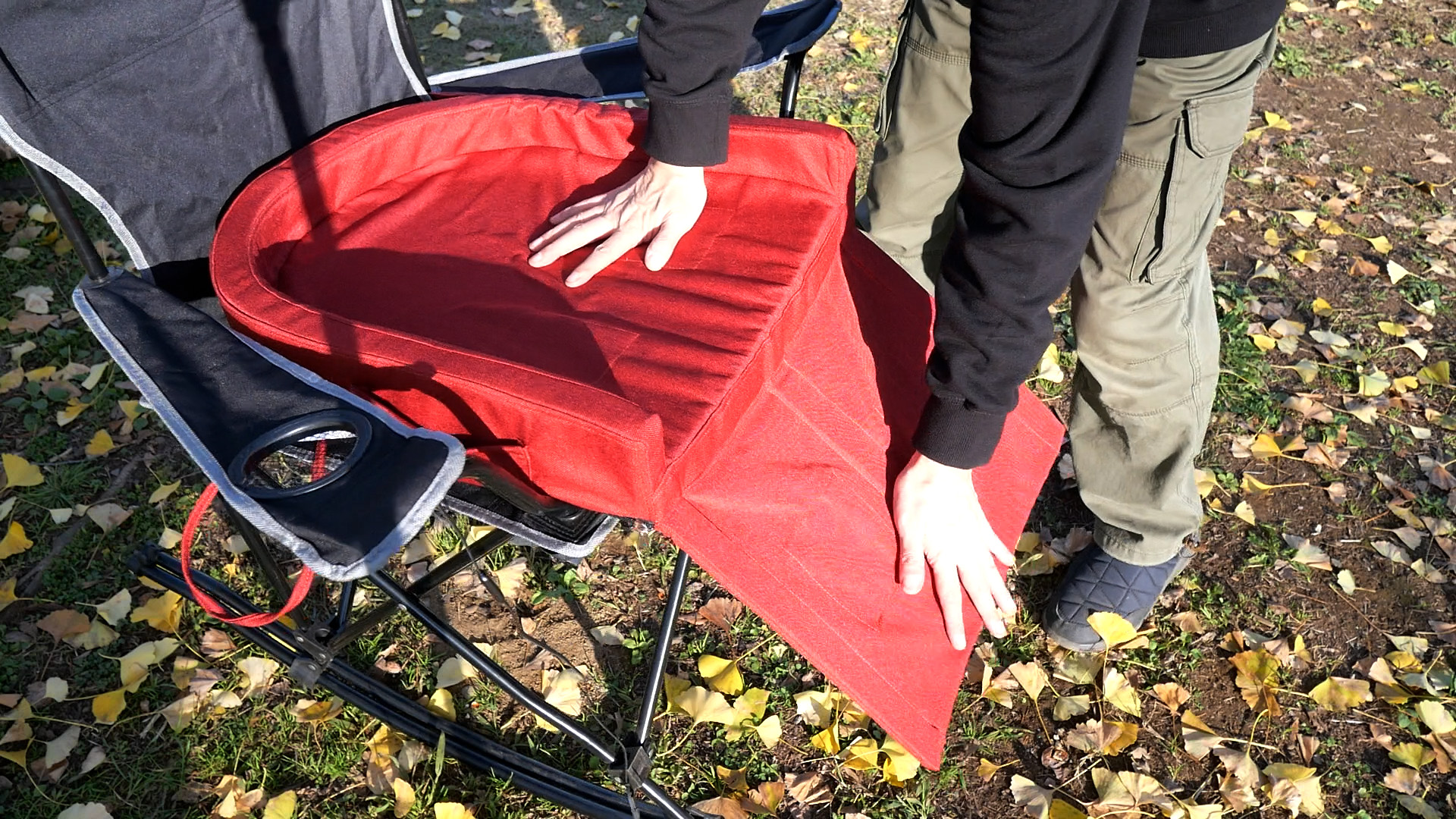 サポート材を取り外せばローチェアでも使えましたが、当然その場合はふくらはぎのヒーターは当たってくれません。その場合は上下逆にして背中に電熱シートが当たってくれたら良いのですが、クッション周囲にフチがあるので逆だとフィットしませんでした。