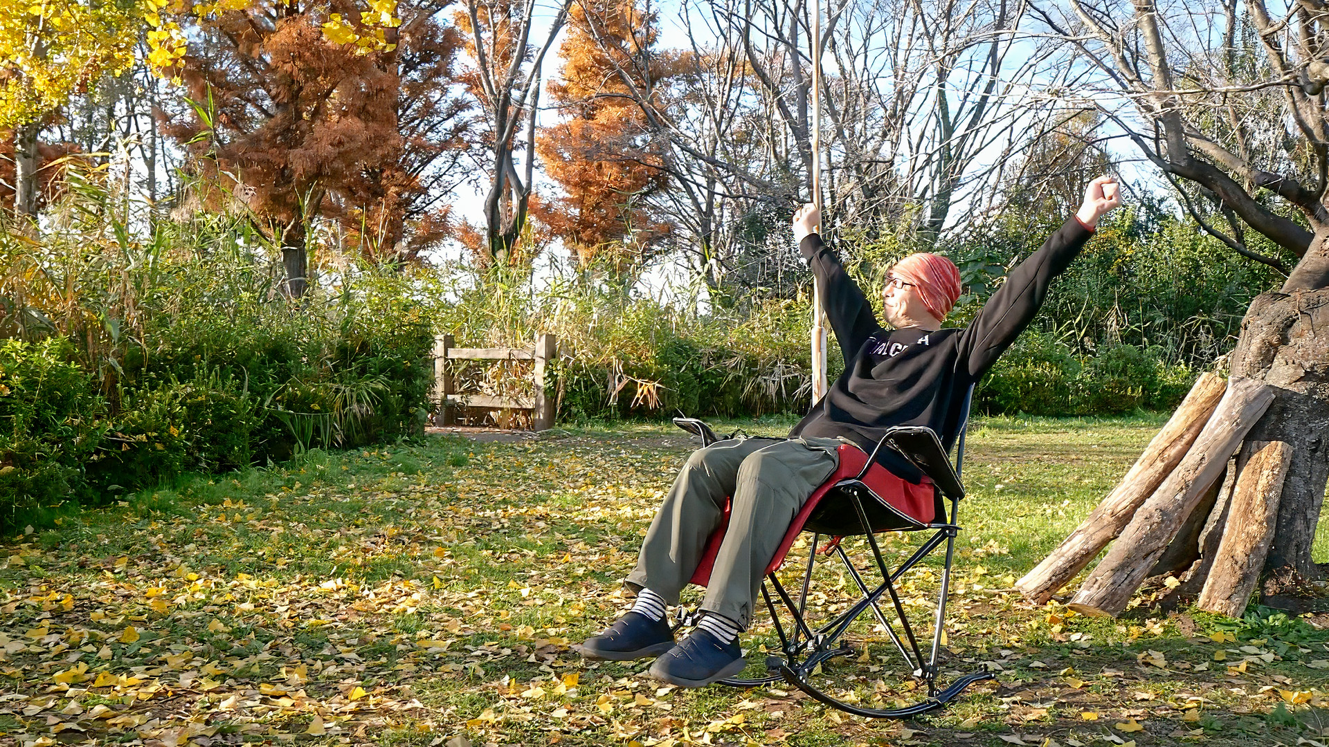 今回は電車のゆらぎを表現できたらと思ってロッキングチェアで使ってみましたが、もちろん自宅やオフィスで使っても良いです。ひざ掛けを併用すればもっとぽかぽか暖かいでしょう。