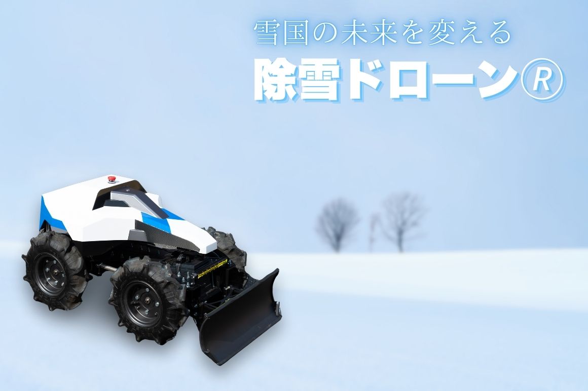 「除雪ドローンSRD-F11RC」は全長1m強、幅65cm、独立4モーターAWDの電動除雪機。コントローラーを使って無線操縦でき、屋内からでも除雪作業を行えるのが特徴だ。