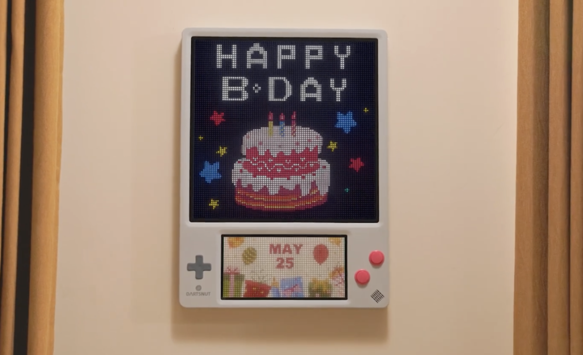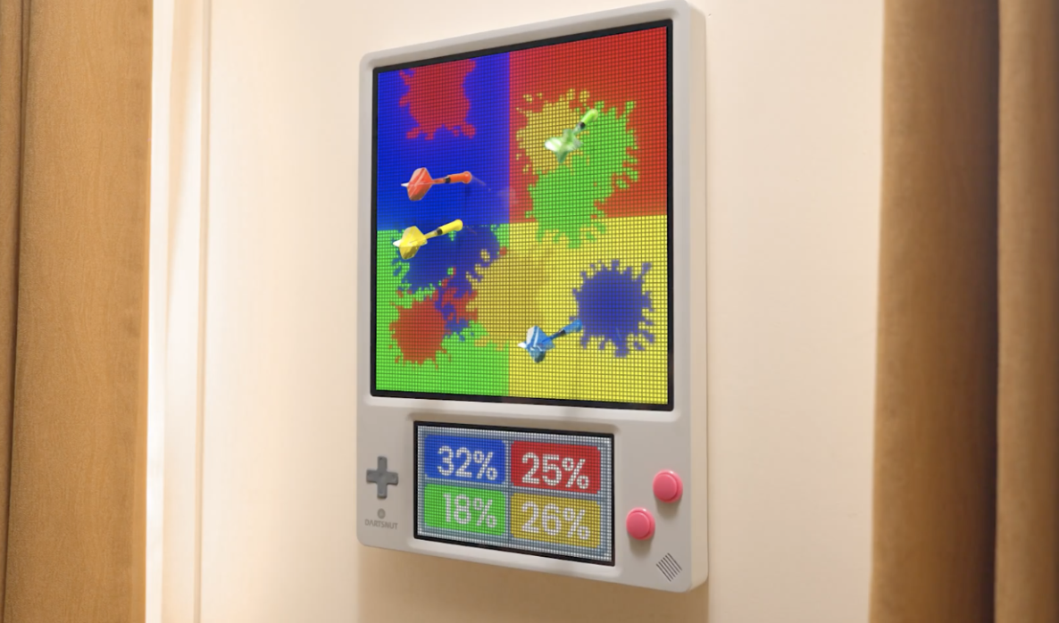 「Pixeldarts」は、時計や天気予報を表示する機能を搭載している。遊んでいない時でも、インテリアとして飾れる。