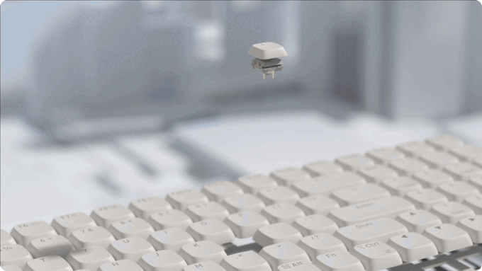 「Flow Lite」はカタカタと軽い打鍵音が鳴る。別売の静音リニアスイッチを購入すれば、打鍵音を抑えられる。3色展開で、キーキャップも84キーと100キー用でそれぞれ4種類。
