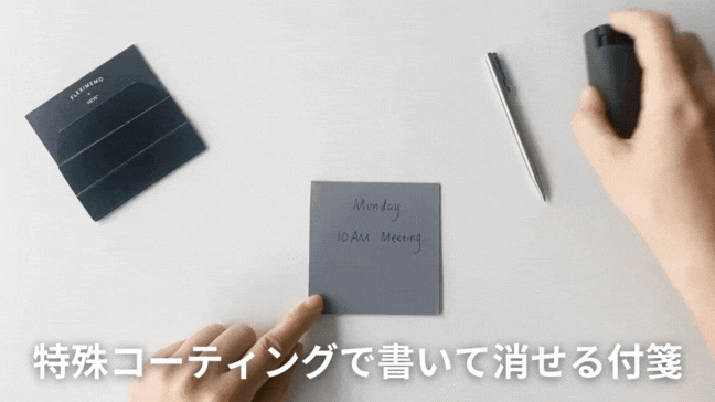 「FlexiMemo」は、特殊コーティングされたシリコン製のメモ帳。市販のボールペンやジェルペンが使え、「書く」「消す」に対応。何度でも繰り返しつかえる。