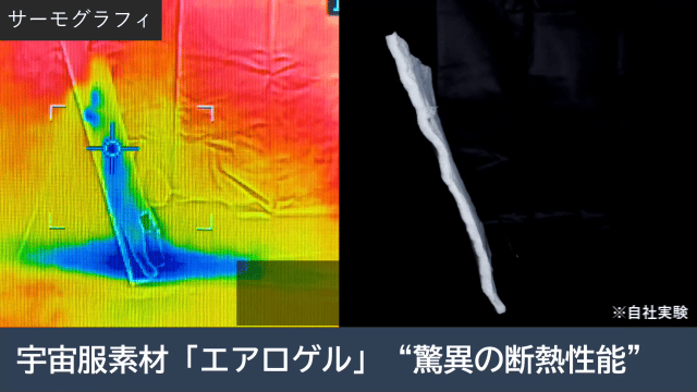 エアロゲルは断熱性に優れ、中綿には保温性の高いホワイトダックダウンを採用している。