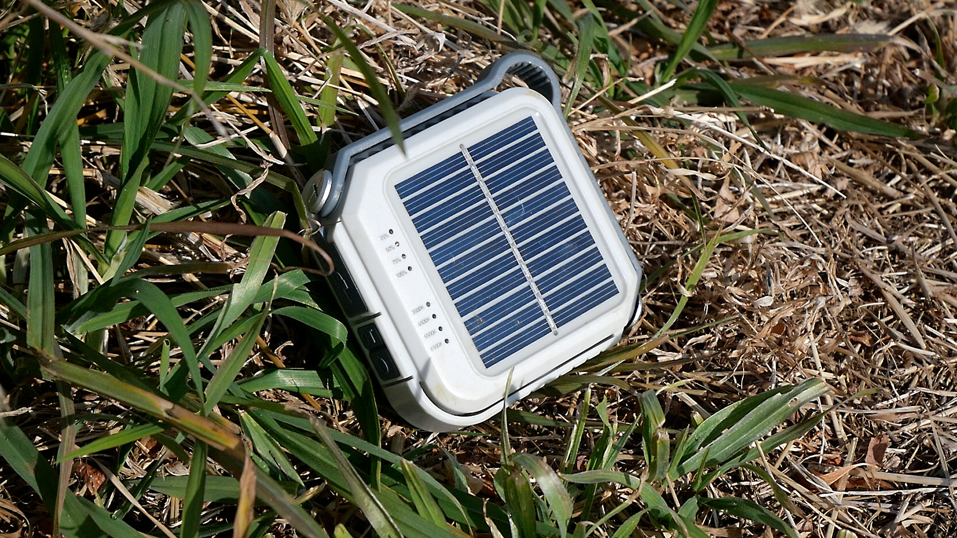 コンパクトボディにソーラーパネルを搭載。内蔵バッテリーを太陽光で充電でき、4400mAhのモバイルバッテリーとしてスマホなどのガジェット類を充電可能。