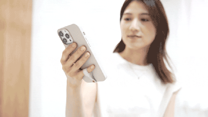 このリングに小指を通して使うことで、画面が自然に垂直に立ち、姿勢が楽になるとしている。
