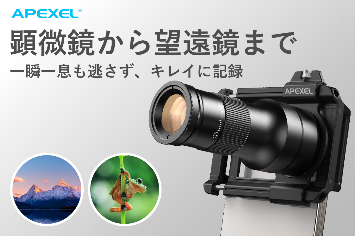 「APEXEL TeleMacro-TM6」は、スマホに取り付けて望遠撮影もマクロ撮影も楽しめる外付けレンズキット。レンズ単体で単眼鏡としても使える。