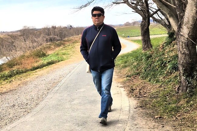 映像がピタリと静止する「固定」と、映像が追従する「追跡」を選べますが、「追跡」の場合でも細かな揺れは補正し、その後、映像が動くように設定されています。こんな感じで歩いていても、映像は揺れません