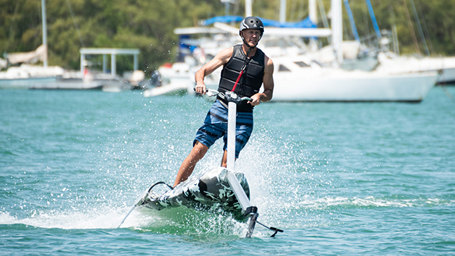 水中翼によって船体が浮くため水の抵抗が少なく、水上を飛んでいるかのようなライディングが楽しめるという。