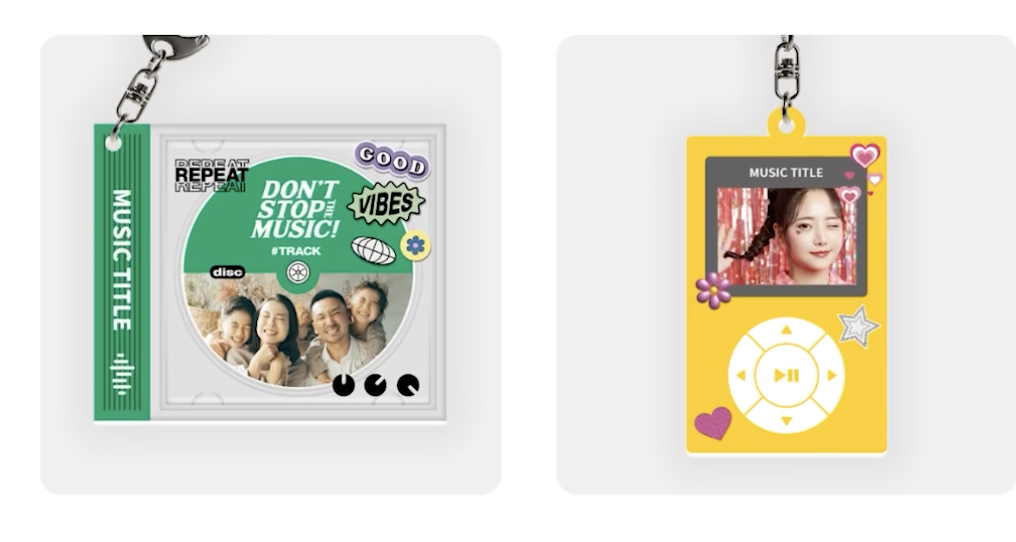 キーホルダーは約40種類のデザインテンプレートと編集機能を搭載しており、自分だけのオリジナルデザインを作成できる。