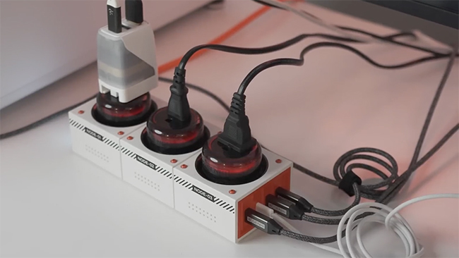 「Moonbase」は。エネルギー効率に優れ、小型・軽量で光出力を維持できるといわれるGaN(窒化ガリウム)を採用した充電ステーション。ACコンセント3つとUSB-Cポート4つを備え、最大7デバイスを同時に充電できる。
