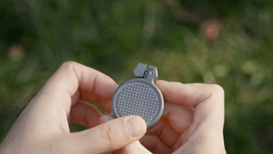 「Loki-Nav」は、チタン製とアルミニウム製の2種類。サイズは36×46.5×18mm。重さはチタン製が48g、アルミニウム製が30g。チェーンに通してネックレスにしたり、カラビナに付けて持ち運びできる。