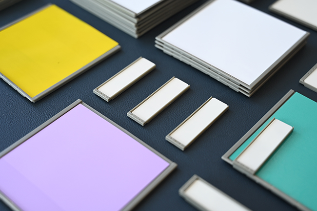 磁力で互いにくっつくため、重ねて省スペースで収納でき、紛失もしにくい。カラーは9種類、サイズは3種類で、プリント等を挟んで一緒に貼り付けられる透明ポケットもオプションで用意されている