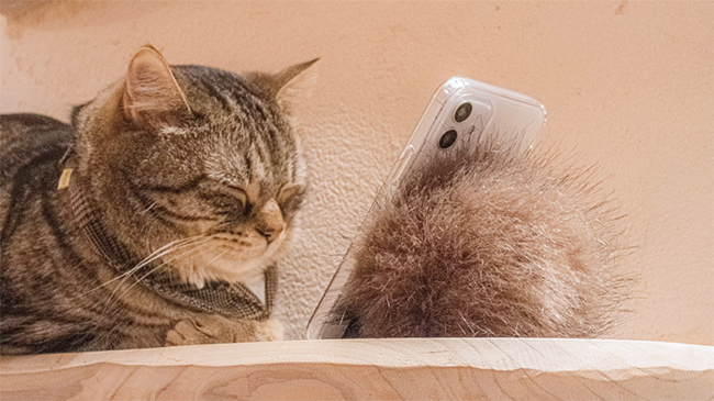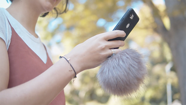ベルトの穴に小指を通して使うとスマホ画面が起き上がる設計で、自然と姿勢も起き上がりやすいという。ファー部分だけ出した状態でバッグやポケットに入れておくと、いつでもサッと取り出せる。