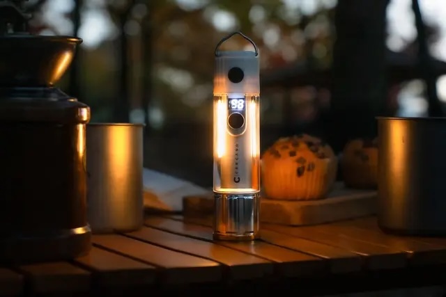 「マルチファンクションライト」は、ランタンにも懐中電灯にもなり、ランタンモードは白色、赤色、赤色点滅、暖色の順に色を変更でき、最大300ルーメン。ランタンモードで約15時間連続で点灯する。