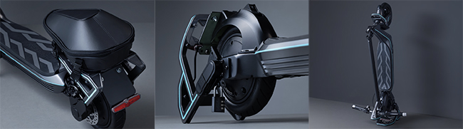 「Ridepiece KB-S350」は、流線的で未来感溢れるデザインが目を引く電動キックボード。「マクロス」シリーズなどを手掛けるアニメーション監督で、メカニックデザイナーでもある河森正治氏がプロダクトデザインを担当している。