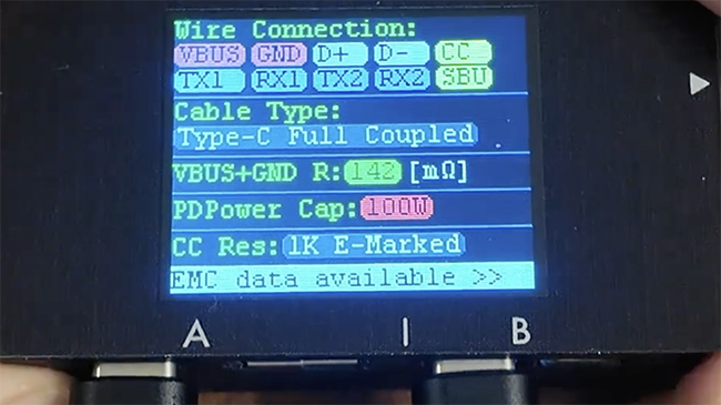 「USB Cable Checker3」はUSB Type-A/C/micro-Bのケーブルに対応。ポートに挿し込むと、規格・最大出力・抵抗値・ワイヤー導通などの情報が表示される。