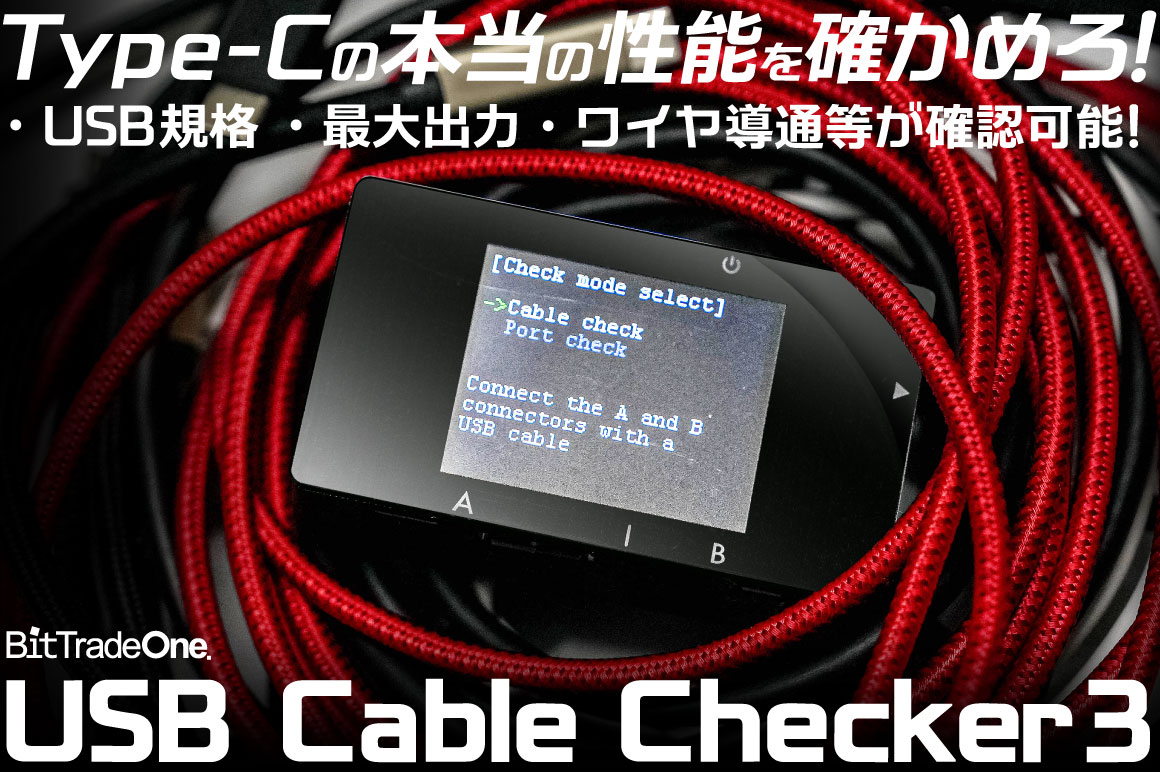 「USB Cable Checker3」は、USBケーブルの両端を挿し込むだけで性能を確認できるプロダクト。さらにUSB Type-Cポートのチェック機能も搭載している。
