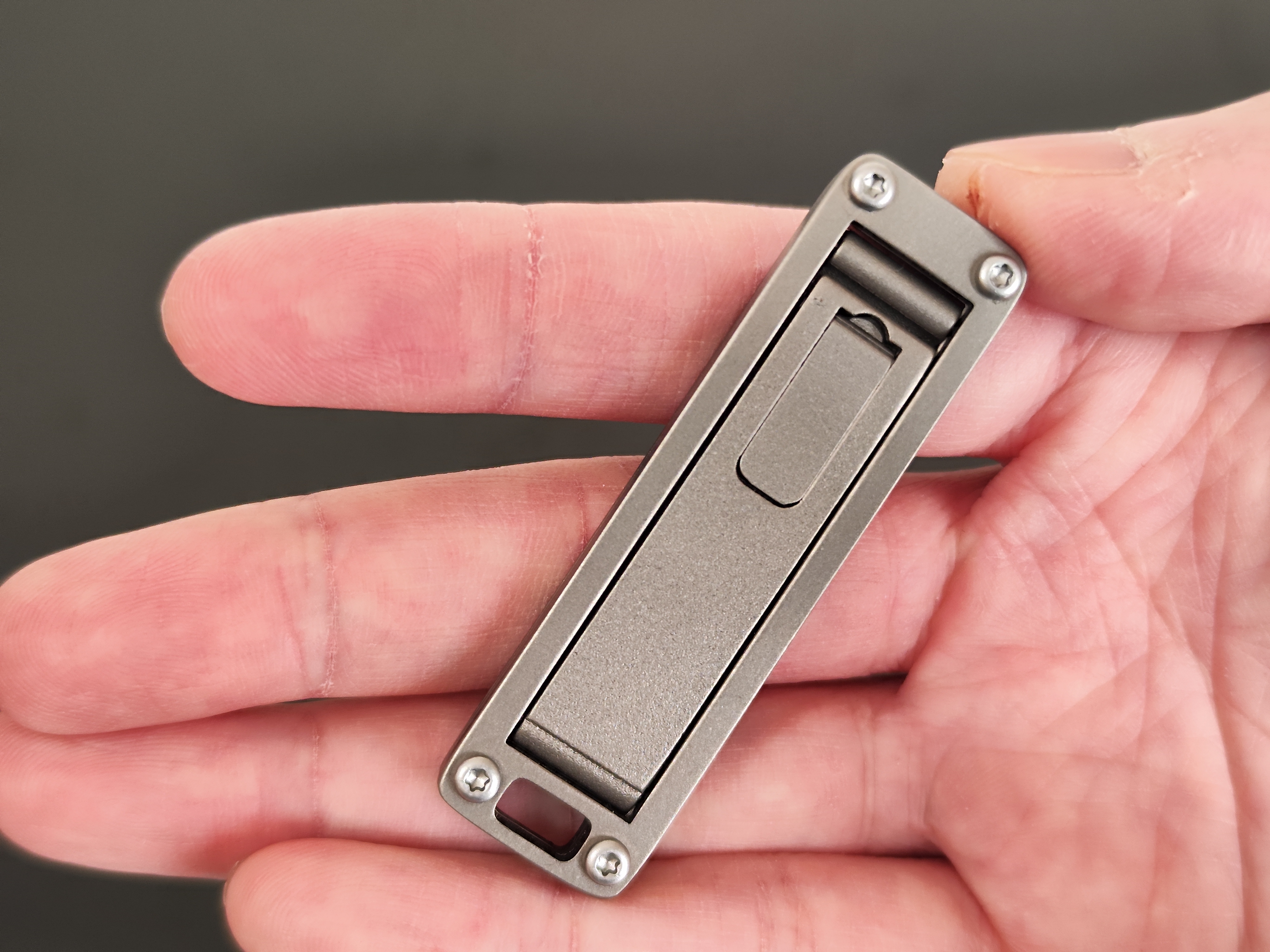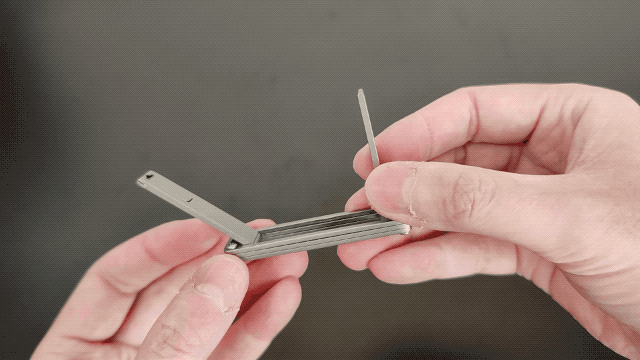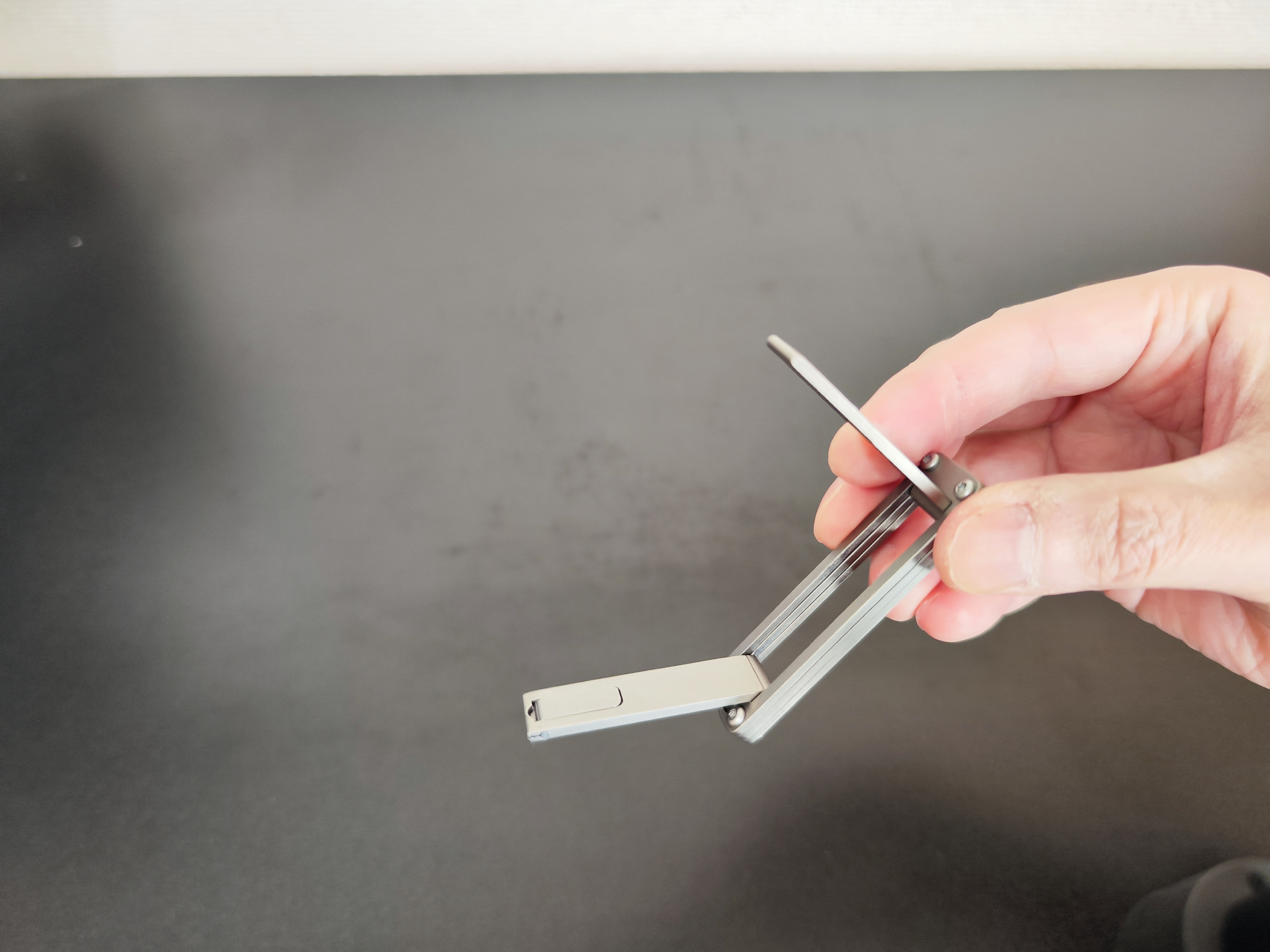 「TiHook」は、折りたたみ式のバッグハンガーだ。内蔵マグネットにより開閉がスムーズで、未使用時は内部のフックやアームが勝手に開くことがないという。