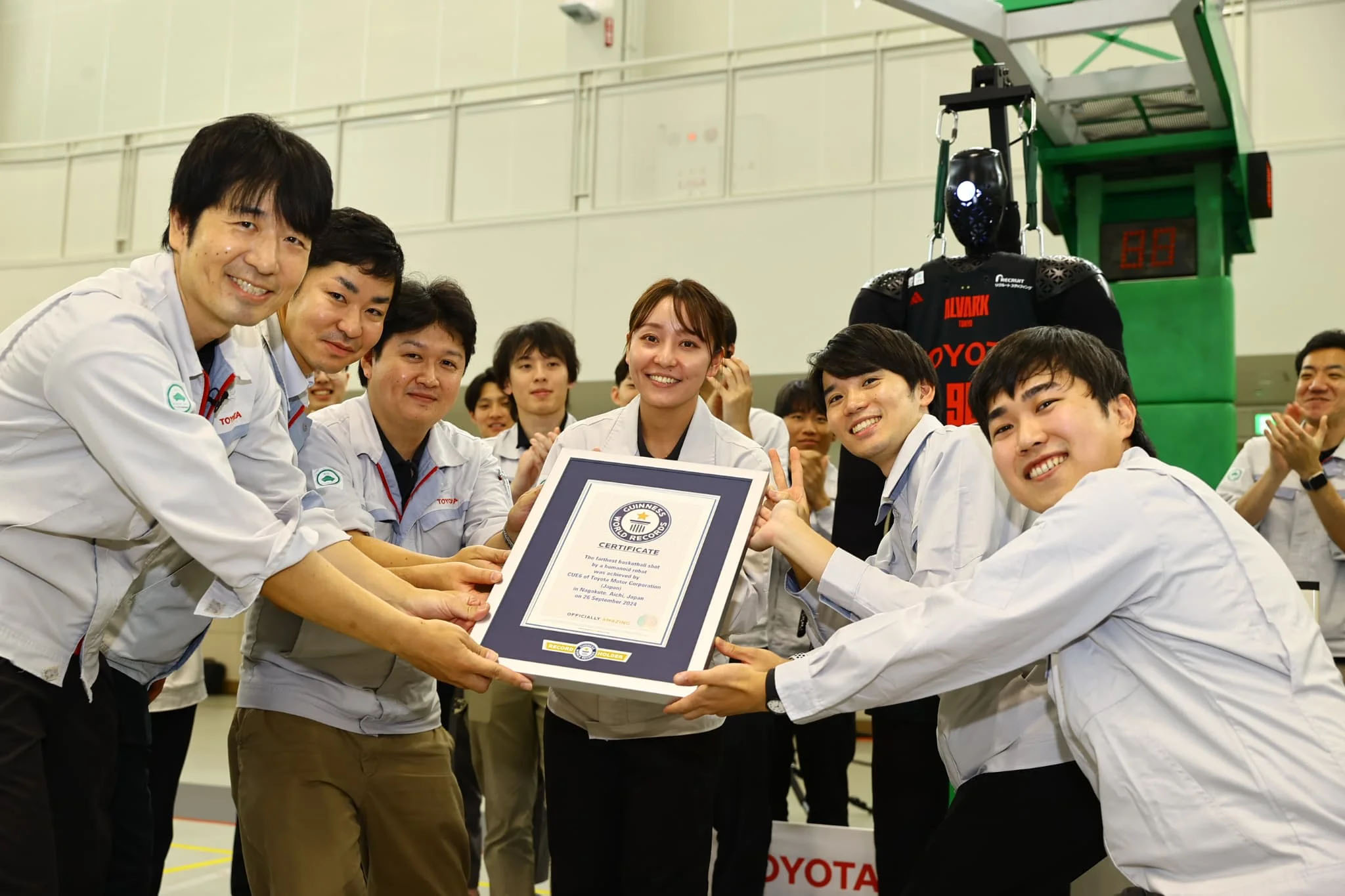 2017年、トヨタ社内の自主活動で製作されたAI搭載ヒト型バスケットボールロボット「CUE」が、2024年12月4日にゴールから24.55m離れた場所からシュートを決め、ロボットによる最長バスケットボールショット最長距離のギネス世界記録を達成した。