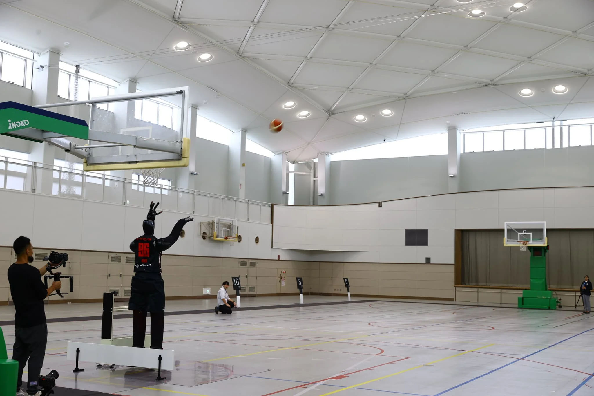 プロジェクトメンバーが調整を施したCUE6は、そのまま2投目に臨む。そして、1投目とまったく同じに見えるモーションで放たれたボールは、吸い込まれるように内径45cmのリングをくぐり抜けた。