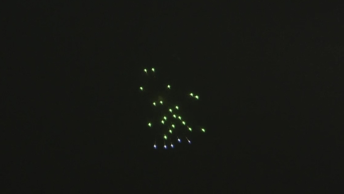 中には避難場所マークをあしらった花火も打ち上がった。