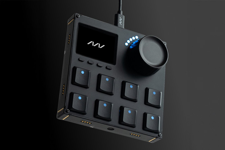 「VSN1」は、PC用の追加コントローラーデバイス。モジュール式になっており、必要な機能を組み替えて使用する。ショートカットキーやダイヤル入力などに対応し、作業が効率的にこなせるという。