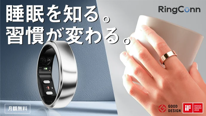 「RingConn 第2世代」は、身体管理や睡眠分析をサポートする、リング型のウェアラブルデバイス。睡眠中の動きや呼吸の規則性を分析し、AIが睡眠の傾向を把握。生活習慣の見直しをサポートするという。