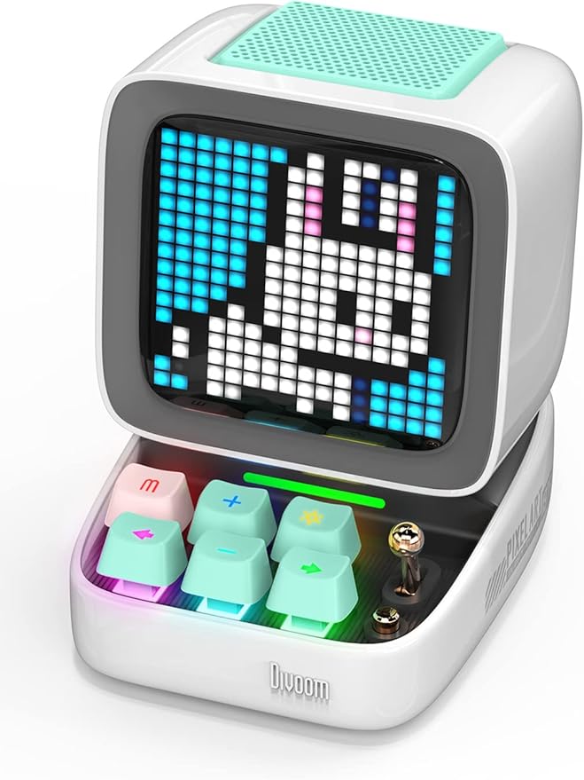 • Divoom Ditoo-ProポータブルBluetoothスピーカー3.55インチLEDスクリーンピクセルディスプレイ、DSPワイヤレススピーカーAPPコントロール、オーディオHD、メカニカルキーボード、ホワイト