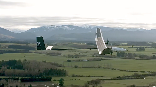 「Kea Atmos」はニュージーランドの企業が開発中の固定翼型ドローン。太陽光発電による高高度飛行が可能で、2025年2月に行われた実験では高度約17km、8時間20分の飛行に成功した。