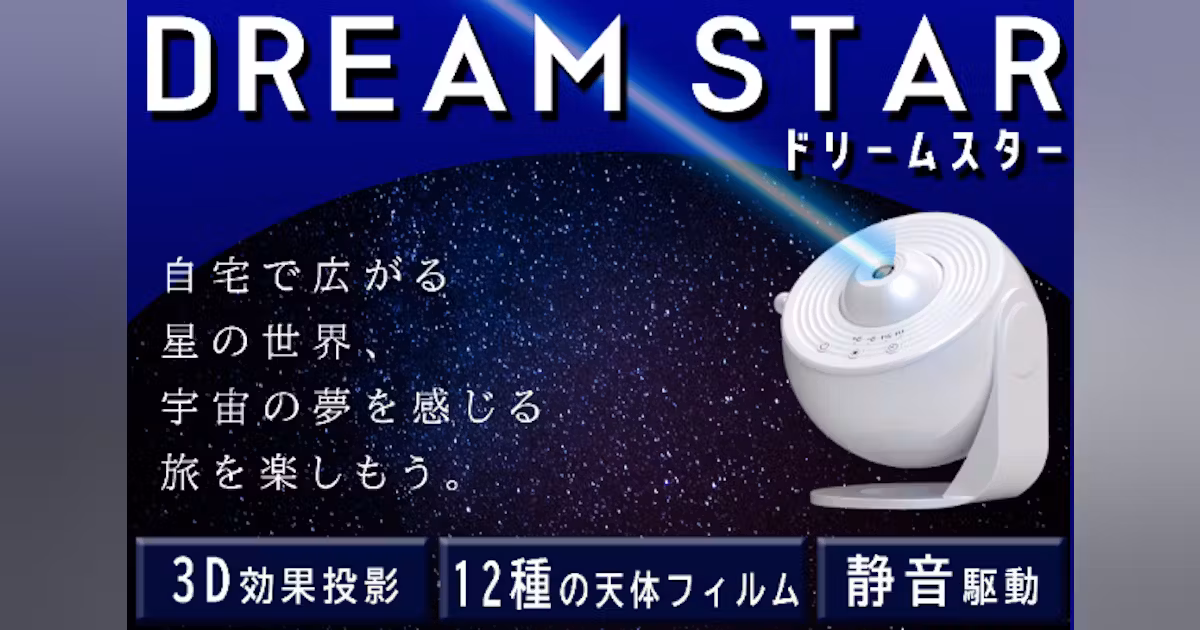 「DREAM STAR」は、5層の4Kレンズを搭載した家庭用プラネタリウム。スイッチを入れると幻想的な宇宙空間が部屋全体に広がる。
