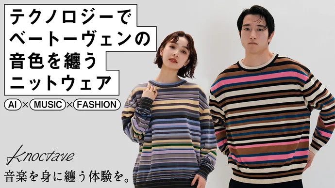 「StripeKnit」は、音楽の音階や感情を色や模様に変換してデザインされたニット。AIが楽曲を分析し、音の特徴をもとに色の組み合わせやストライプ柄を生み出しているという。今回登場したのは、ベートーヴェンの名曲「歓喜の歌」と「運命」をテーマにした2モデル。
