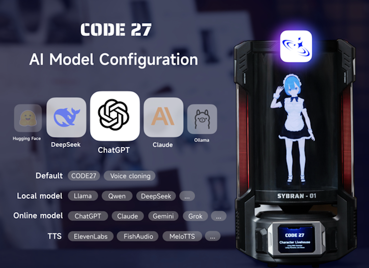 CODE27は声のトーンや表情などを読み取り、会話の文脈に合わせて表情やアニメーションを自動的に変化させる。