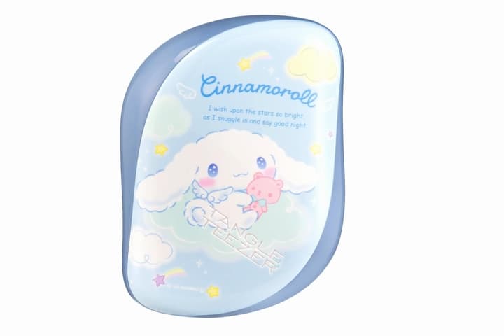 ふわふわの耳と羽が愛らしいシナモロールが、お気に入りのくまさんと星空を旅するゆめかわいいデザイン。日本・UKで特許取得の長短二段構造ブラシにより、髪の毛をひっぱることなく、やさしく絡まりをほぐします。