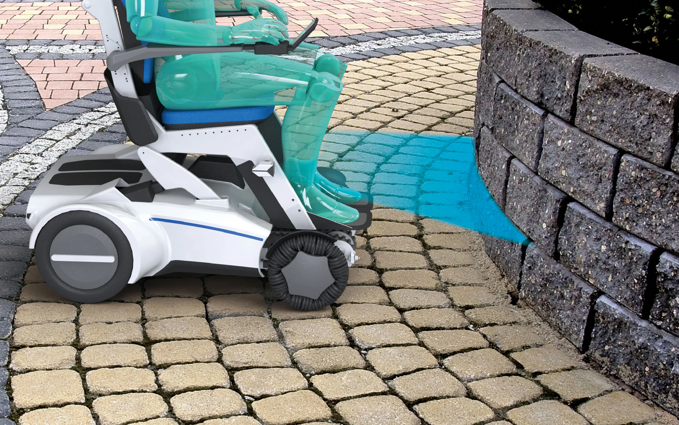 「AVEST Launch Edition」は、階段も上れるクローラーを搭載したの電動車いす。階段を上がるしくみを備えており、これまで車いすでは行きにくかった場所への移動を可能にする。