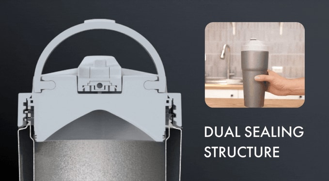 フタの部分は二重シール構造。揺れや転倒、逆さまにしても漏れないという。
