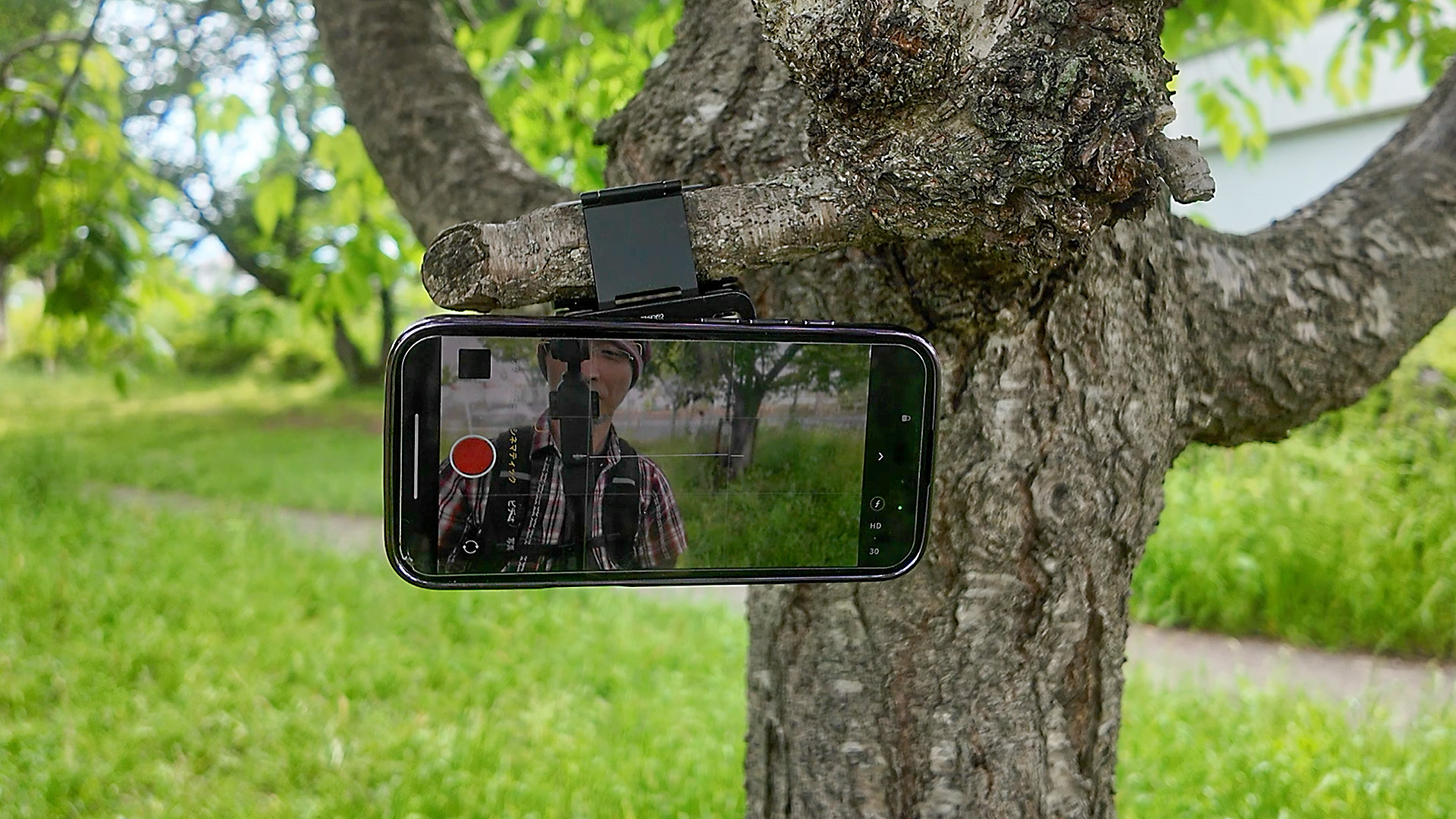 プレートは4枚が連結されていて自由に曲げられるので、ぐるっと丸めてカメラグリップとして使ったり、枝や棒に巻き付けて固定することもできます。