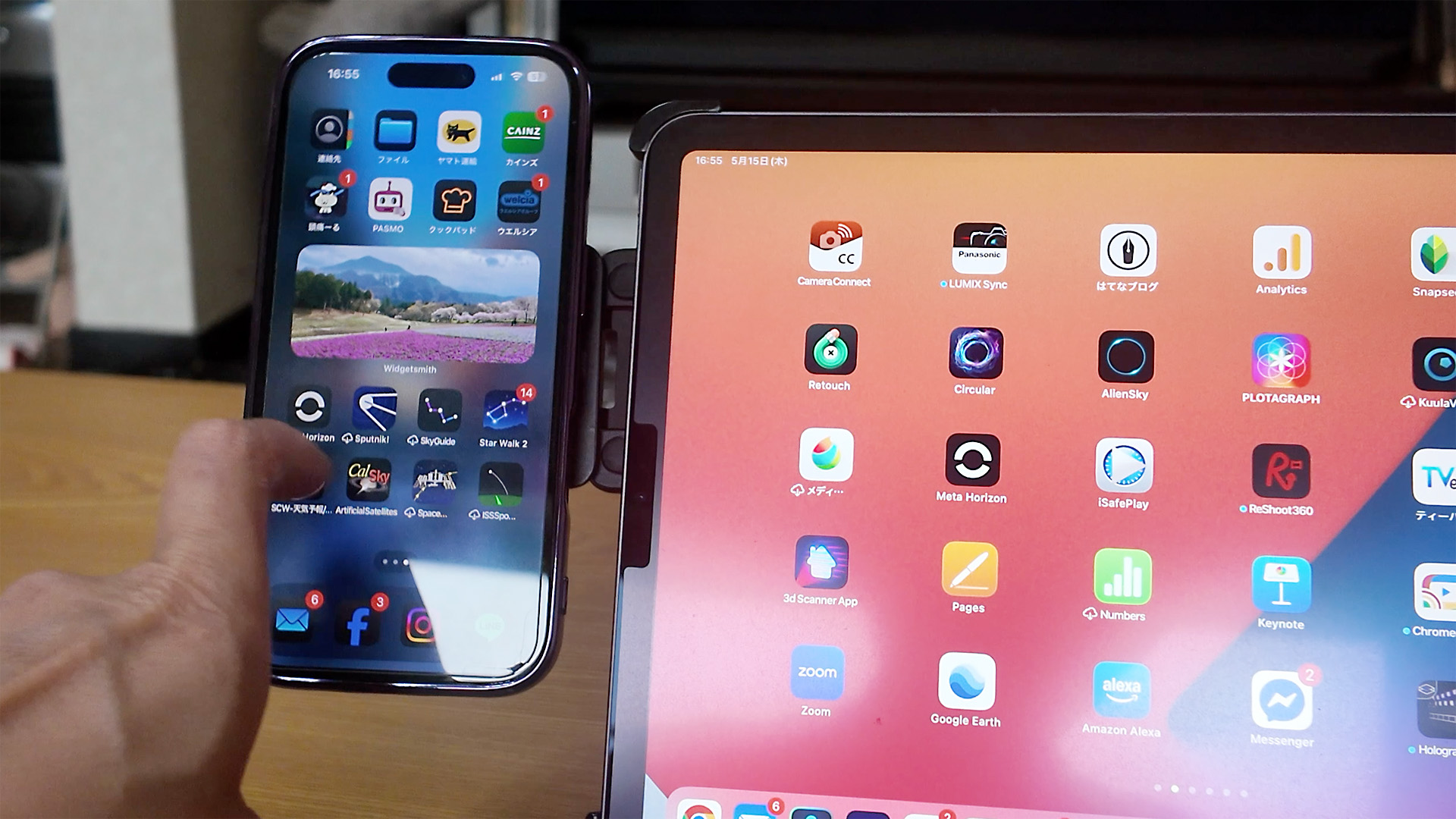 車の中でもエアコンの吹き出し口やCDスロットに取り付けられますし、新幹線や飛行機内ではテーブルに引っ掛けて使えます。さまざまなシーンで活用できそうです。
