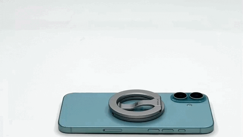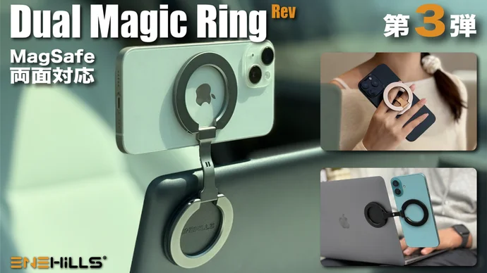「Dual Magic Ring Rev版」は、MagSafe対応の2つの磁気吸着リングを連結したプロダクト。片方をスマホに、もう片方を様々な物や場所に吸着させられ、幅広い使い方が可能だ。