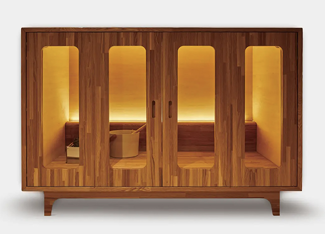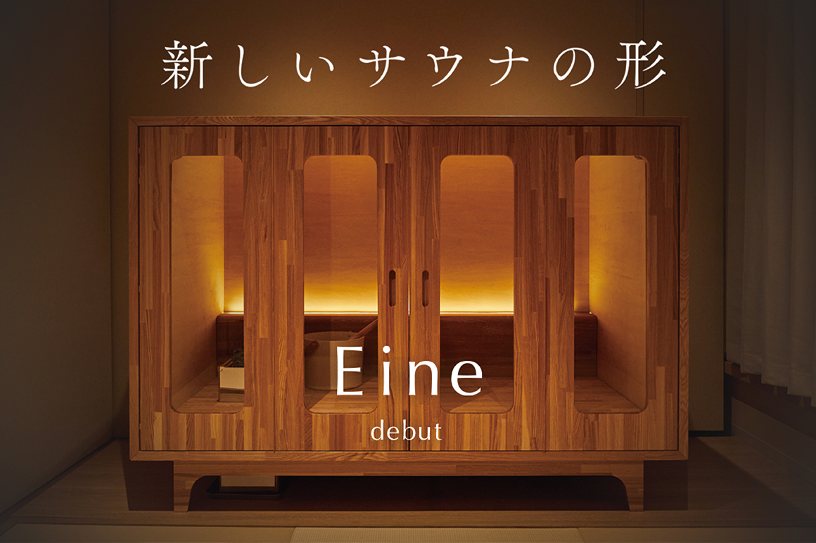 「Eine」は幅181.1 × 奥行き75.6 × 高さ133.1cmのミニサウナ。100V電源の電気ストーブをコンセントに接続して使用でき、一般家庭にも導入できるプロダクトだ。