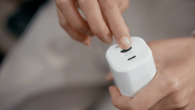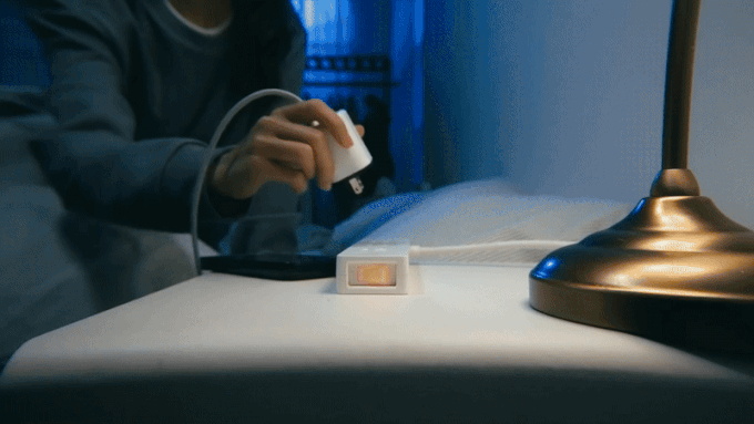 「PhotoPower」をコンセントに差し込み、スマートフォンを接続すると、充電と同時にバックアップが自動で開始される。寝る前につなげて充電すれば、朝には写真・動画・連絡先などのバックアップが済んでいる。