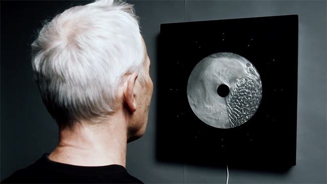 「clock.zero」はドイツのエンジニア兼デザイナーが開発したインテリアアート。15秒で1回転する単針時計の構造で、針の回転によって繊細な渦巻き模様が描き出されるのが特徴だ。