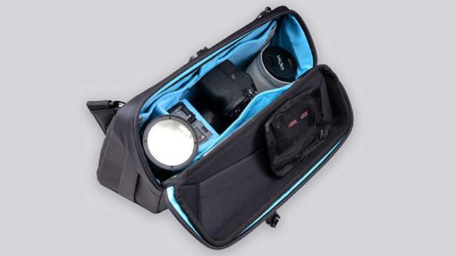 複数のポケット・仕切り・ストラップを備え、レンズ、三脚、バッテリー、タブレットなど様々なツールを収納できる。