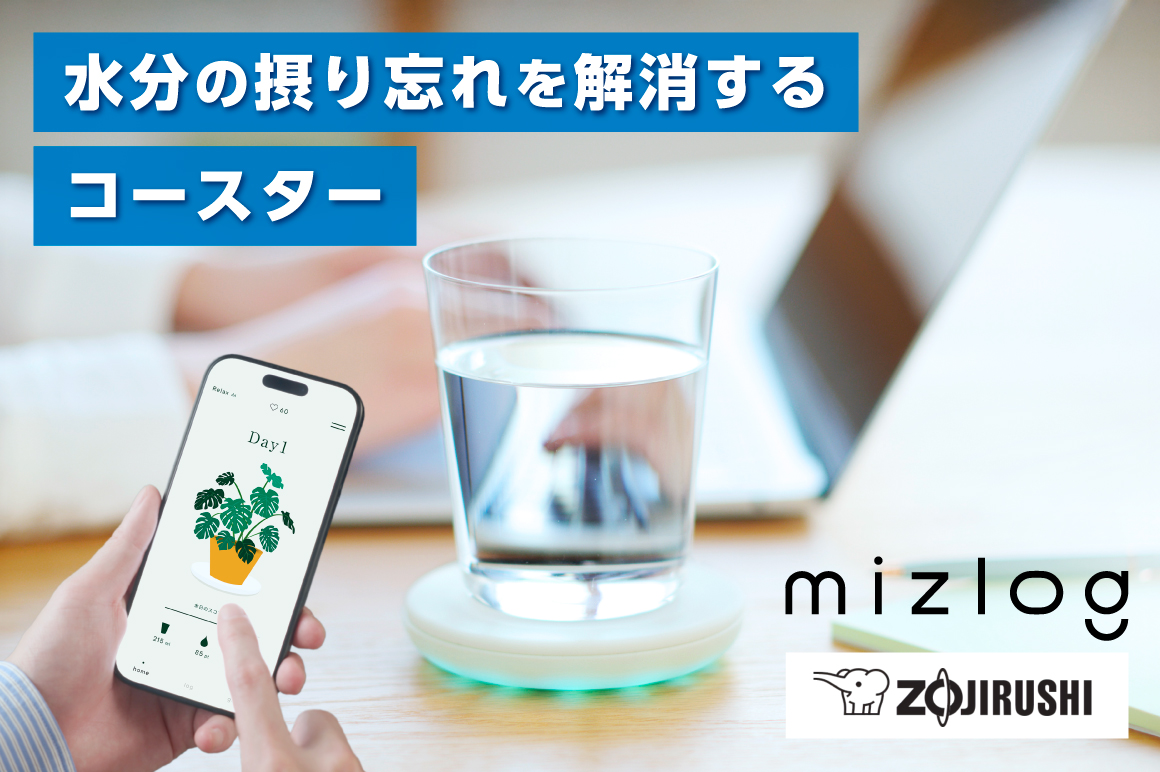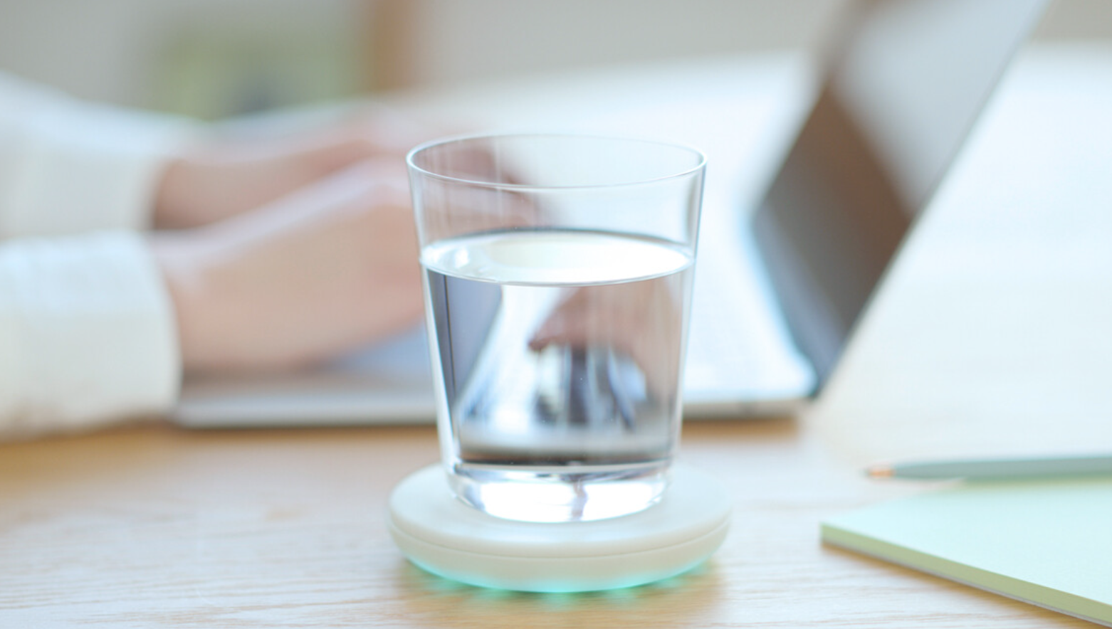 「mizlog」は、コップやタンブラーを置くだけで、飲水量を自動記録。さらに、水分補給のタイミングになると、LEDの光で通知してくれる。スマートフォンとBluetoothで連携すれば、専用アプリから飲水履歴の確認や通知を設定できる。