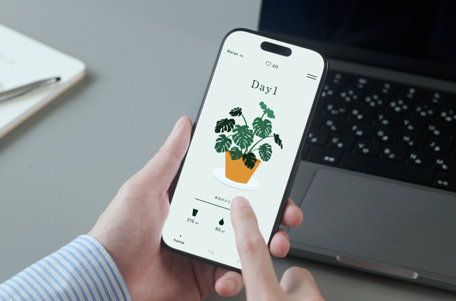 また、水を飲むごとにアプリ内の植物が成長するなど、ゲーム感覚で楽しめる仕掛けもある。