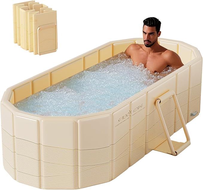 • Bounvi ポータブルバスタブ 折り畳み浴槽 簡易風呂 露天風呂 水風呂 コンパクト 組み立て不要 収納便利 持運び便利 長時間保温 子供 大人用 家庭用 (ゴールド フタなし 1.2M)