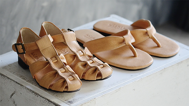 デザインは、動きやすいグルカサンダルと、草履型のビーチサンダルの2種類を展開している。