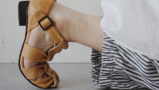 軽く丈夫な鹿革は、超極細繊維で柔らかく通気性に優れ、素足で着用するサンダルにも適するという。