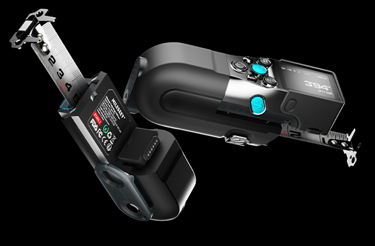 最大3.6mのメジャー機能と最大100mの距離計を備える。面積や体積を自動計算したり、角度の割り出しや水平をレーザーで表示したりする機能がある。